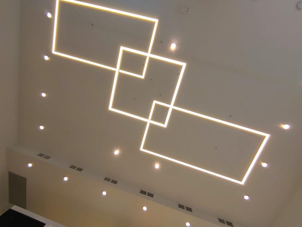 Per l’illuminazione generale è stata installata una composizione di sospensioni mod. “NOVALUX – P30” dalla particolare forma squadrata che illumina lo spazio in maniera completa ed uniforme. Per la zona dei camerini i nostri specialisti hanno optato per sospensioni minimal con cavo elettrico nudo, in abbinamento ad un portalampade di colore bianco attorcigliato intorno alla struttura portante esistente.