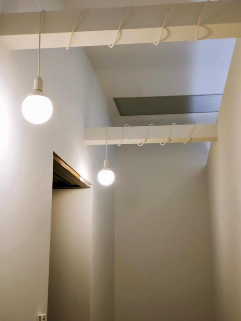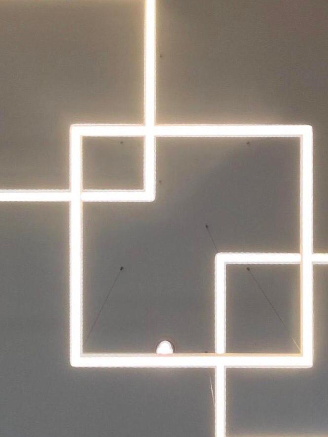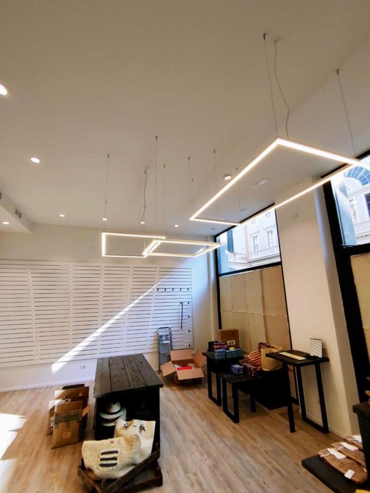 Per l’illuminazione generale è stata installata una composizione di sospensioni mod. “NOVALUX – P30” dalla particolare forma squadrata che illumina lo spazio in maniera completa ed uniforme. Per la zona dei camerini i nostri specialisti hanno optato per sospensioni minimal con cavo elettrico nudo, in abbinamento ad un portalampade di colore bianco attorcigliato intorno alla struttura portante esistente.