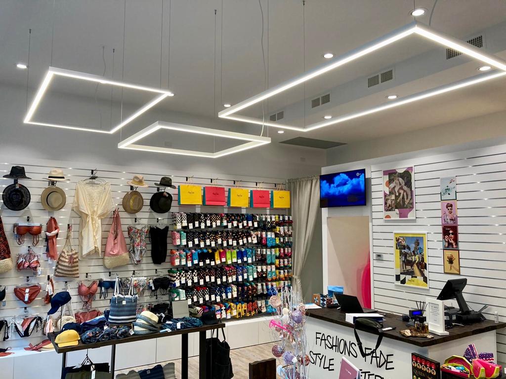 Lo stile ed i colori vivaci colori dei prodotti in continuo rinnovo saranno invece valorizzati con luci ad incasso orientabili estraibili mod. “ATILED – SPACY 25W”, per garantire la massima flessibilità espositiva.